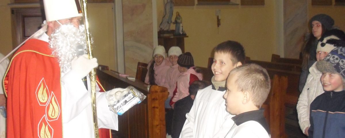 Večer 6. decembra deti očakávali známého biskupa, ktorý bude rozdávať sladkosti 🙂 Nakoniec sa dočkali. Po svätej omši prišiel Mikuláš…