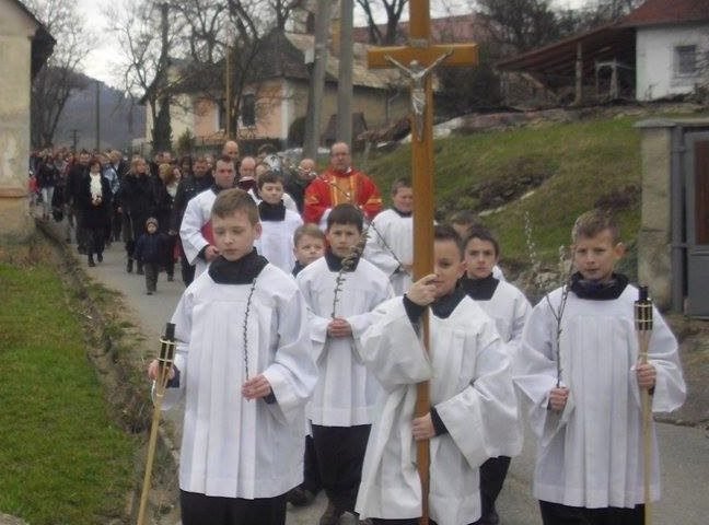 Pán farár sa pri kostole sv. Štefana prihovoril veriacim týmito slovami: „Drahí bratia a sestry, od začiatku pôstneho obdobia sme sa duchovne očisťovali pokáním a skutkami kresťanskej lásky. Dnes sa schádzame, aby sme spolu s celou Cirkvou začali sláviť veľkonočné tajomstvo Ježiša Krista. Kristus Pán toto tajomstvo uskutočnil svojou smrťou a zmŕtvychvstaním; preto prišiel do svojho mesta Jeruzalema. S vierou a nábožnosťou oslávme teda spomienku na jeho spásonosný vstup do Jeruzalema. Sprevádzajme Pána, aby sme mali účasť na jeho slávnom zmŕtvychvstaní a večnom živote, ktorý dosiahneme, keď s pomocou jeho milosti budeme spolu s ním trpieť.”