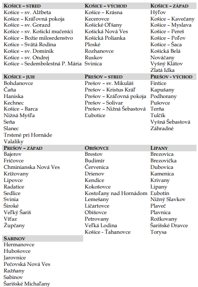 Od 1. júla 2020 budú v našom dekanáte tieto farnosti: